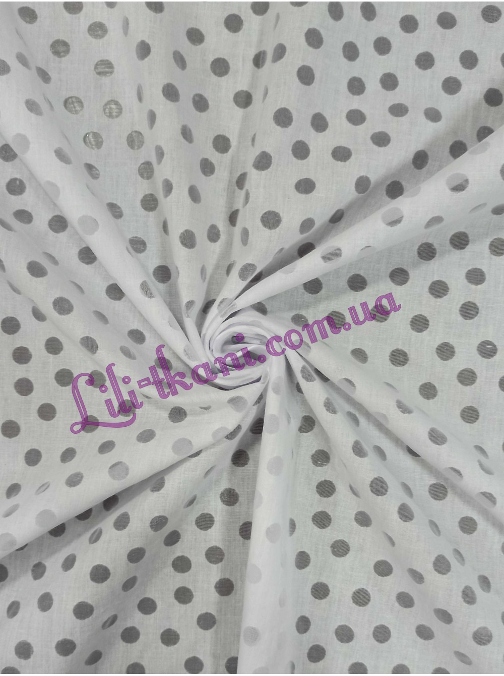 Батист у прозорий горошок, середньої щільності, підійде для пошиття літнього одягу: сарафану, сукні, блуз.